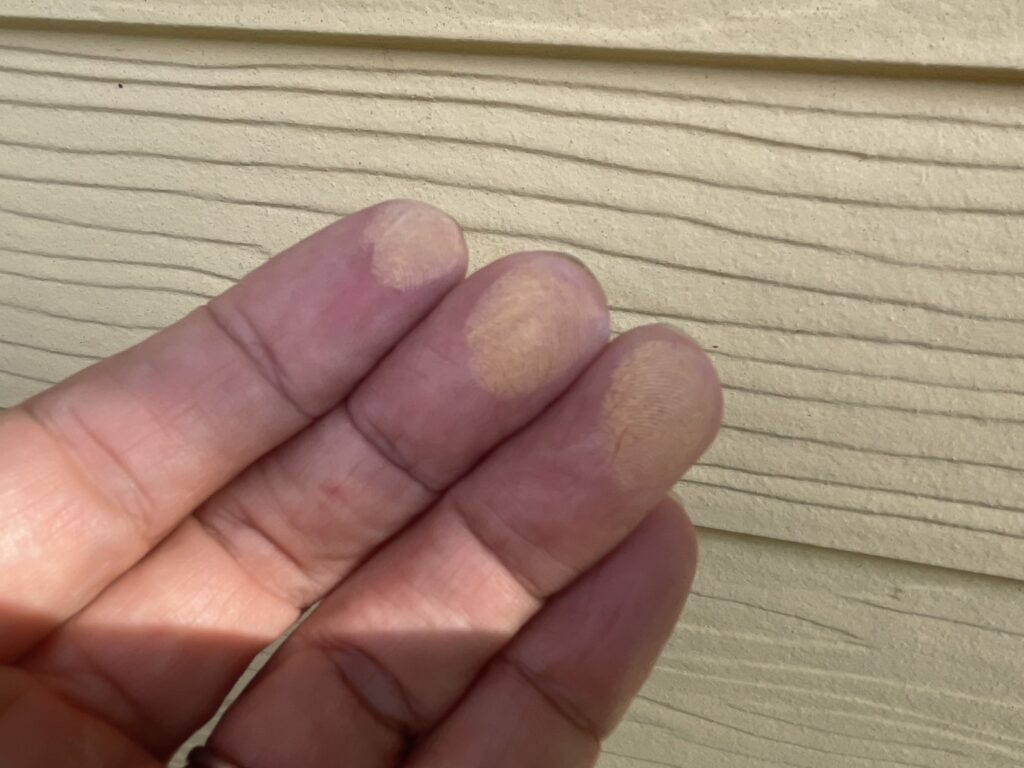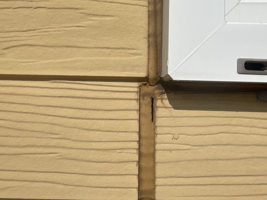 外壁の方はサイディングのひび割れ、シーリングの劣化、チョーキング現象がみられ、塗り直しの時期が来ていました。